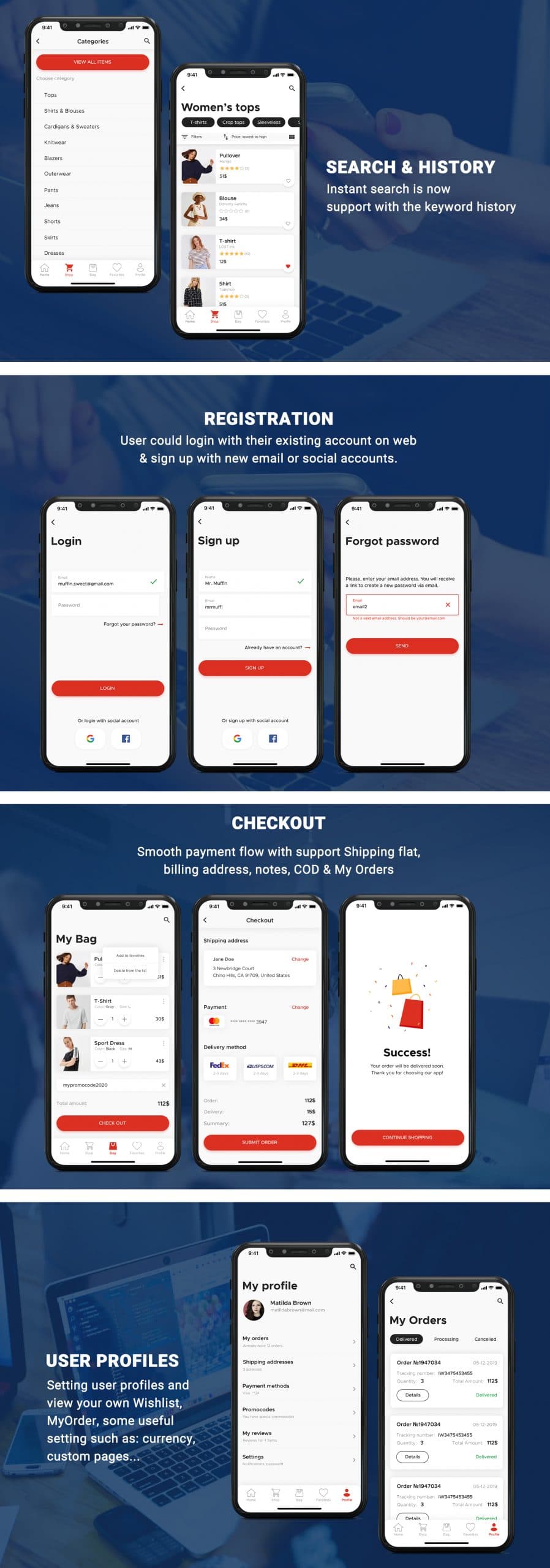 E-commerce is a retail cutting-edge, with innovative online stores and mobile applications. Customers want soft navigation and value-added performance with online e-commerce stores and mobile apps. The best e-commerce platforms currently open are React native apps and ReactJS websites. Business owners can choose mobile app platforms and create powerful E-commerce App for E-Commerce stores for making more profits for their business. Being the best e-commerce development company, we offer a fully-featured mobile app solution & website for e-commerce stores at affordable prices.